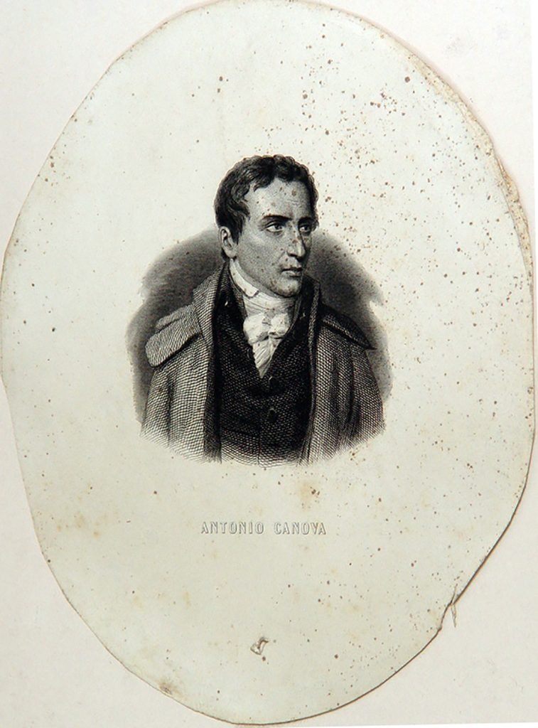 Mezzo busto frontale e viso di tre quarti lato destro. Firma incisore in basso a sinistra.