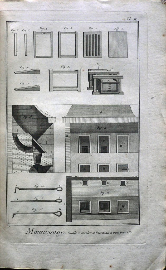 Monnoyage, Outils à mouler et Forneau à vent puor l’Or.