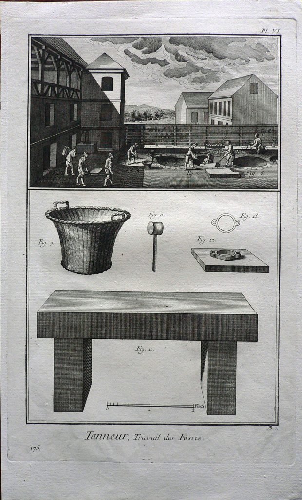 La stampa fa parte di una serie di incisioni (345) tratte dall'”Enciclopedia o Dizionario ragionato delle scienze, delle arti e dei mestieri (Encyclopédie ou Dictionnaire raisonné des sciences, des arts et des métiers”). L’enciclopedia fu pubblicata nel XVIII secolo (il primo tomo è del 1751, l’ultimo del 1772), in lingua francese, da un consistente gruppo di intellettuali sotto la direzione di Denis Diderot e con la collaborazione di Jean-Baptiste Le Rond d’Alembert. La sua introduzione, il Discorso Preliminare, è considerata un’importante esposizione degli ideali dell’Illuminismo, nel quale viene esplicitato l’intento dell’opera di incidere profondamente sul modo di pensare e sulla cultura del tempo: “l’opera che iniziamo […] ha due scopi: in quanto enciclopedia, deve esporre quanto più è possibile l’ordine e la connessione delle conoscenze umane; in quanto Dizionario ragionato delle scienze, delle arti e dei mestieri, deve spiegare i principi generali su cui si fonda ogni scienza e arte, liberale o meccanica, e i più notevoli particolari che ne costituiscono il corpo e l’essenza”. Essa costituì il più ponderoso e consapevole compendio – in un certo senso un vero e proprio manifesto – rappresentativo della visione del mondo promossa dal movimento filosofico e culturale passato alla Storia come Illuminismo e finì per incarnare il concetto stesso di enciclopedia come summa complessiva e sistematica delle conoscenze di un’intera cultura, laddove l’impiego di una lingua nazionale si afferma definitivamente come mezzo di descrizione ordinata dell’intero universo del sapere. Le prime ristampe italiane dell’Encyclopédie, in lingua francese, apparvero nella Repubblica di Lucca (tra il 1758 e il 1776) e a Livorno (1770-1778).