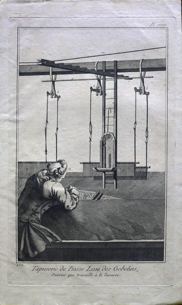 Tapisserie de Basse Lisse des Gobelins,Ouvrier qui travaille à la lumiere.
