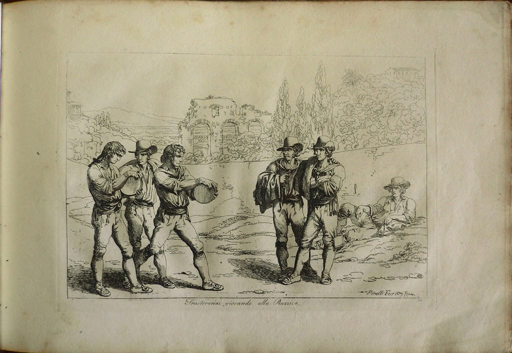 Raccolta di cinquanta costumi pittoreschi incisi all’acquaforte da Bartolomeo Pinelli Romano in Roma 1809/Trasteverini giocando alla Ruzzica