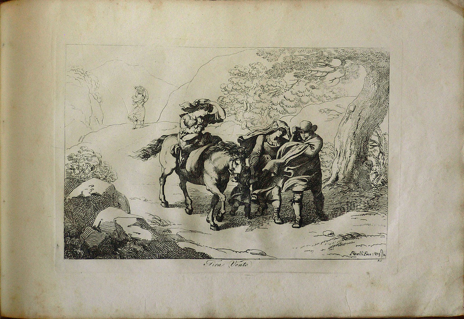 Raccolta di cinquanta costumi pittoreschi incisi all’acquaforte da Bartolomeo Pinelli Romano in Roma 1809/Tira (Vento)