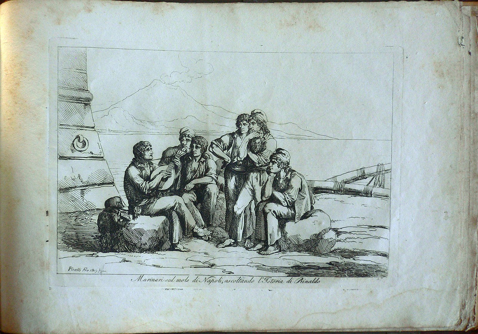 Raccolta di cinquanta costumi pittoreschi incisi all’acquaforte da Bartolomeo Pinelli Romano in Roma 1809/Marinari sul molo di Napoli, ascoltando l’Istoria di Rinaldo