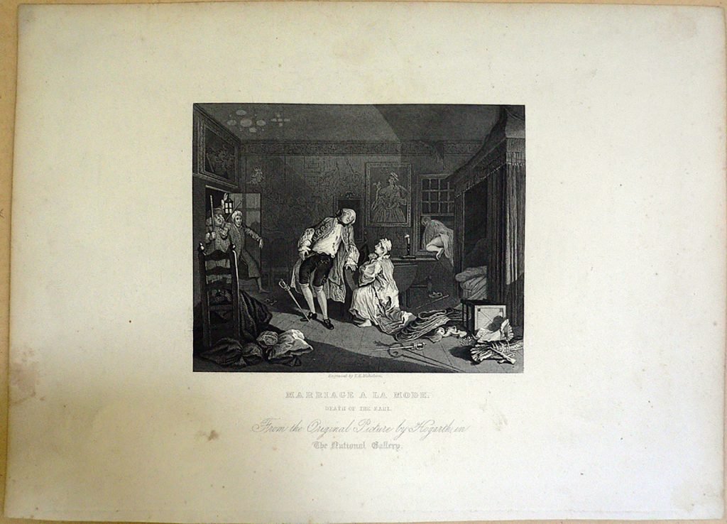 Testo: “From the Original Picture by Hogarth, in the National Gallery.” Hogarth (1697 – 1764) nasce a Londra, città dalle mille sfacettature, roccaforte del dissenso religioso e grande centro commerciale, il palcoscenico privilegiato dove l’esistenza umana, che Hogarth mise in scena, si consumava tra eccesso e degrado.