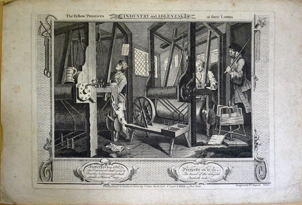 Testo: “From the Original Picture by Hogarth.” Hogarth (1697 – 1764) nasce a Londra, città dalle mille sfacettature, roccaforte del dissenso religioso e grande centro commerciale, il palcoscenico privilegiato dove l’esistenza umana, che Hogarth mise in scena, si consumava tra eccesso e degrado.