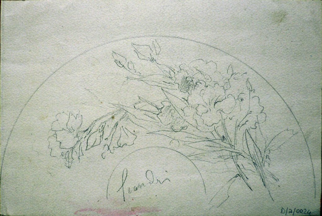 Raffigurazione di oleandri da eseguirsi, presumibilmente sulla tela di un ventaglio. Al centro, in matita: leandri.
