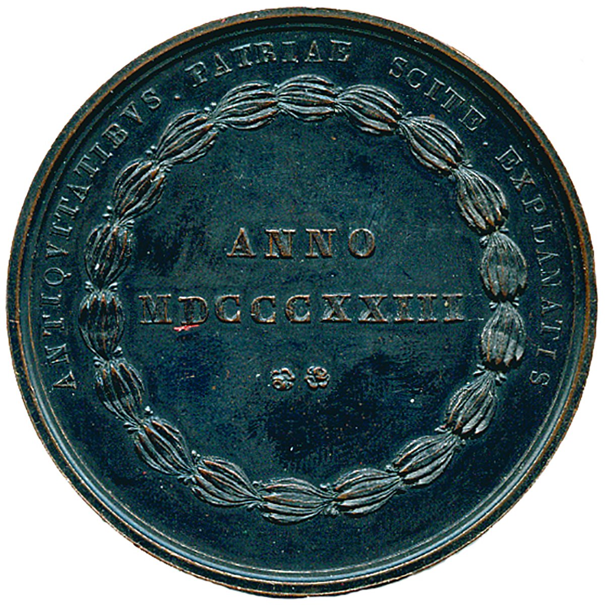 Nel campo scritta in due righe entro corona floreale: ANNO /MDCCCXXII (1823)/ due rose.