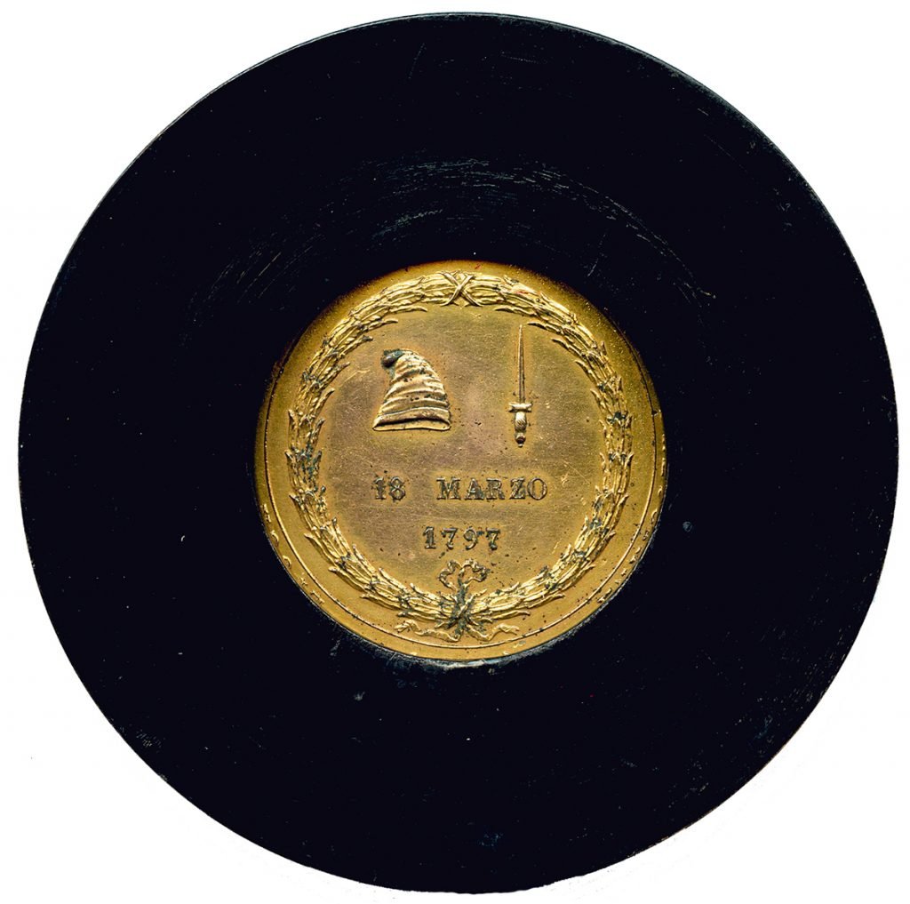 All’interno di una ghirlanda d’alloro sono raffigurati un berretto frigio, un pugnale e la scritta: 18 MARZO /1797.